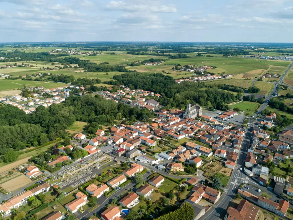 Photo aerienne de Mouzillon dans le pays du vignoble nantais. Photo du bourg de Mouzillon.